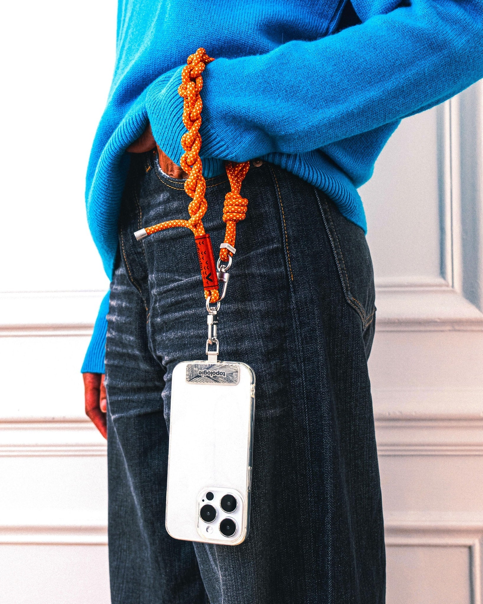 Convert your own phone case into a crossbody and free your hands today. Topologie Phone Strap Adaptor features a refined stainless steel D-ring renowned for its robust, anti-oxidation, and anti-rust properties. Compatible with most phone cases, break from the ordinary and unlock the versatile potential of your daily look.